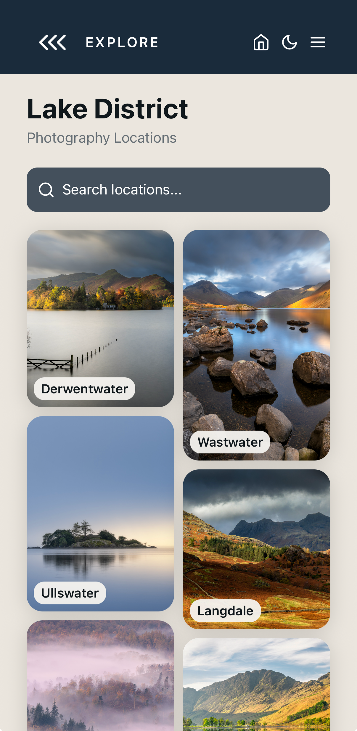 PHOTOSCOUT Built by multi award-winning pro landscape photographers, FOR PHOTOGRAPHERS The promiseCurated spots (not crowdsourced)Access/logistics that stop wasted tripsConditions + “when it works” guidance What you get Regions → Locations → Spots, favourites, offline (if you have it), etc. Why trust this“Built by a full-time landscape photographer & gallery owner” + proof points (gallery, workshops, audience)
